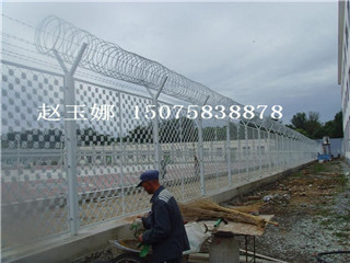 主要是采用高強度的刀片刺網與普通防護網的結合,由V型支架立拄,加強型焊接片網,安全防盜連接件和刀片刺網組成.